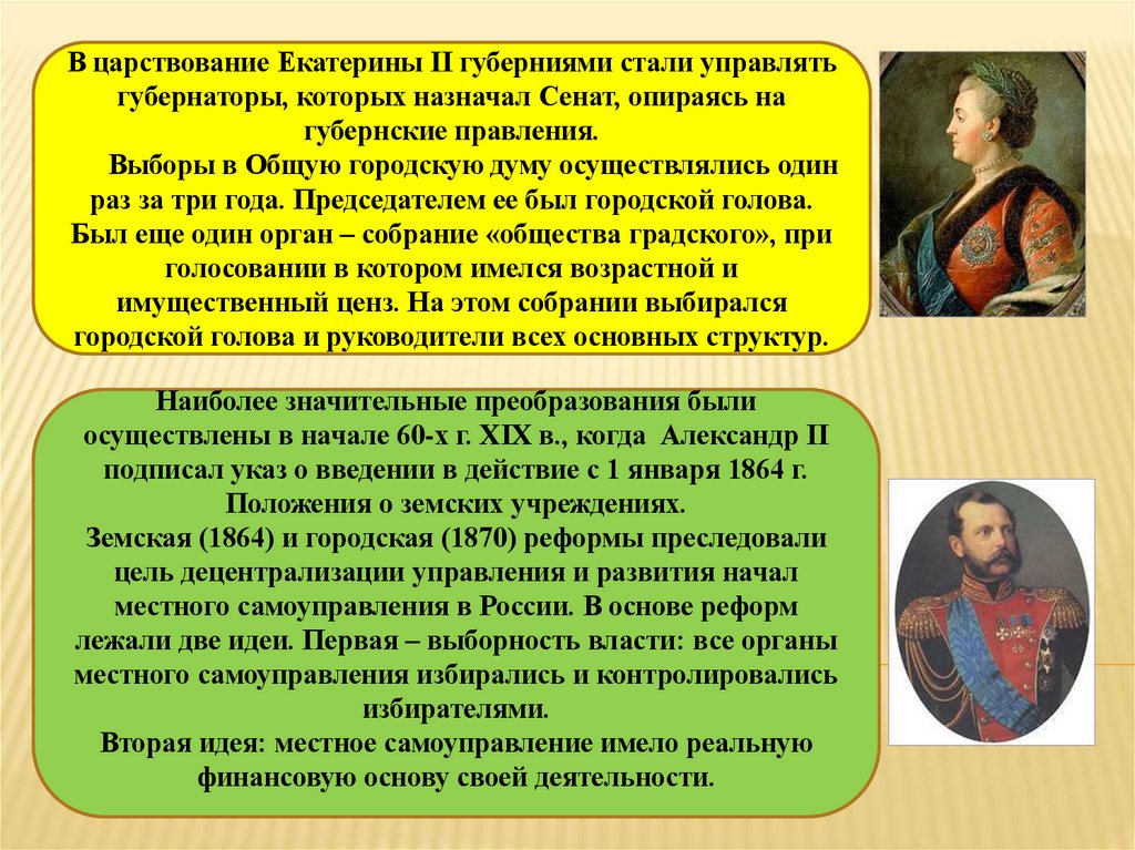 В царствование Екатерины II губерниями стали управлятьгубернаторы, которых назначал Сенат, опираясь на
