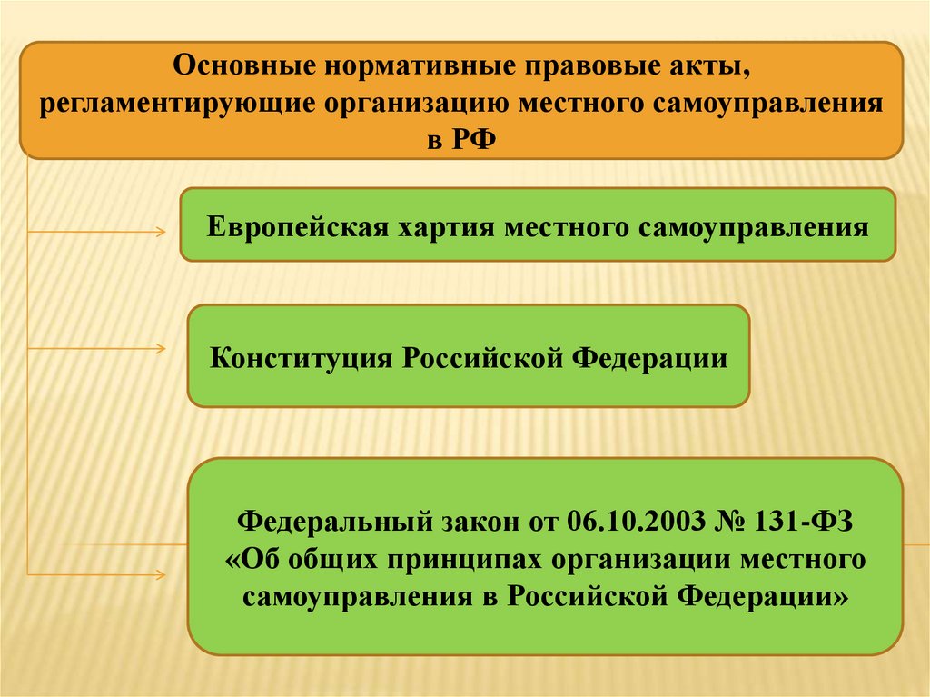Основные нормативные правовые акты,регламентирующие организацию местного самоуправления