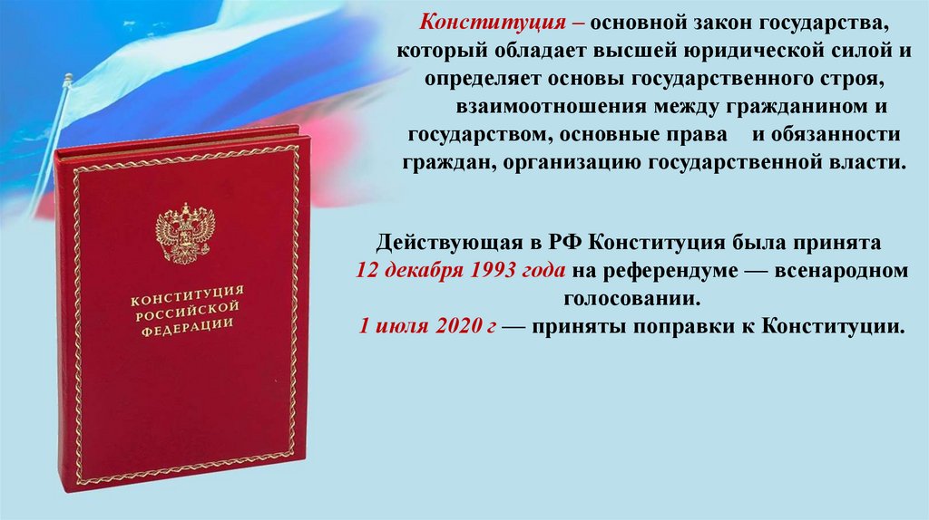 Конституция – основной закон государства,который обладает высшей юридической силой и