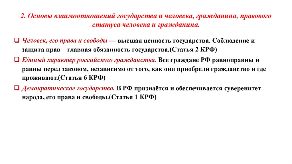 14. 2. Основы взаимоотношений государства и человека, гражданина, правового статуса человека и гражданина.