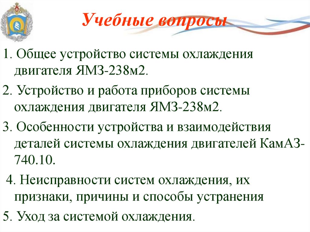1. Общее устройство системы охлаждениядвигателя ЯМЗ-238м2.
