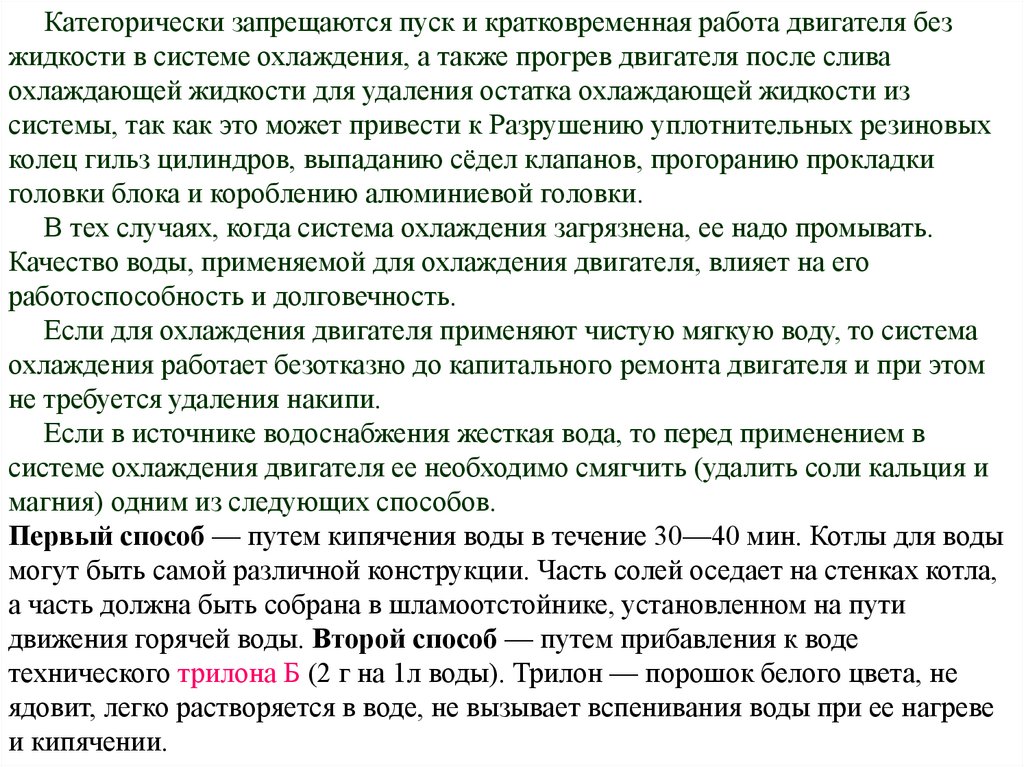 20 г технического трилона. После одного дня работы автомобиля (не менее 6-7 ч)