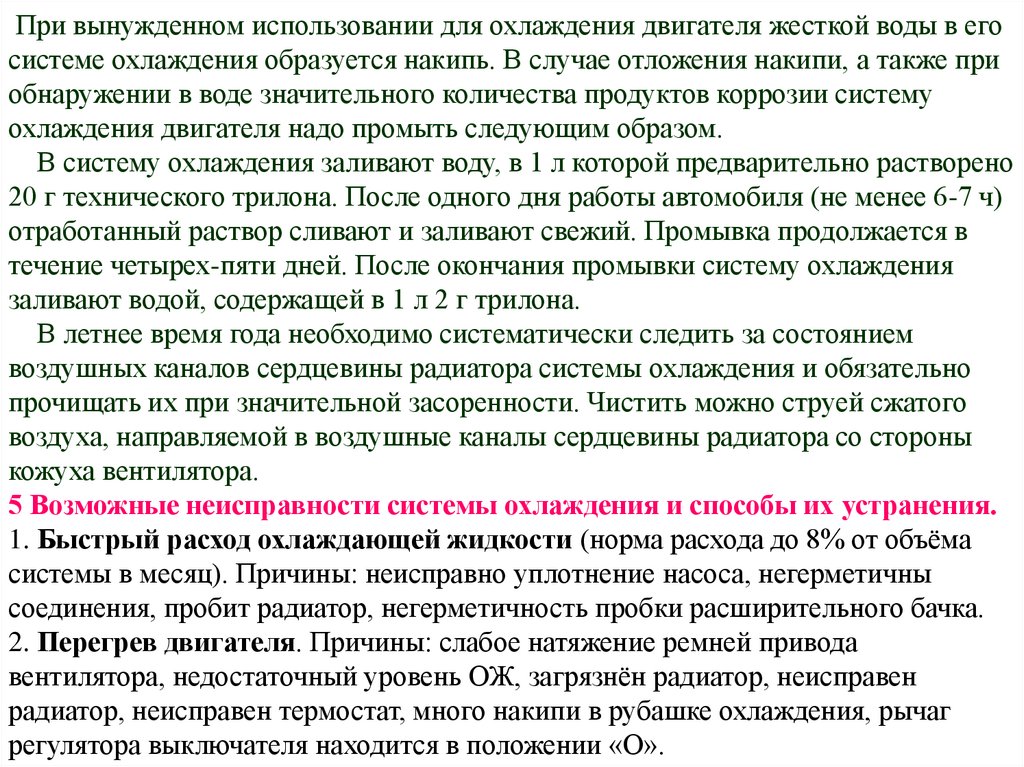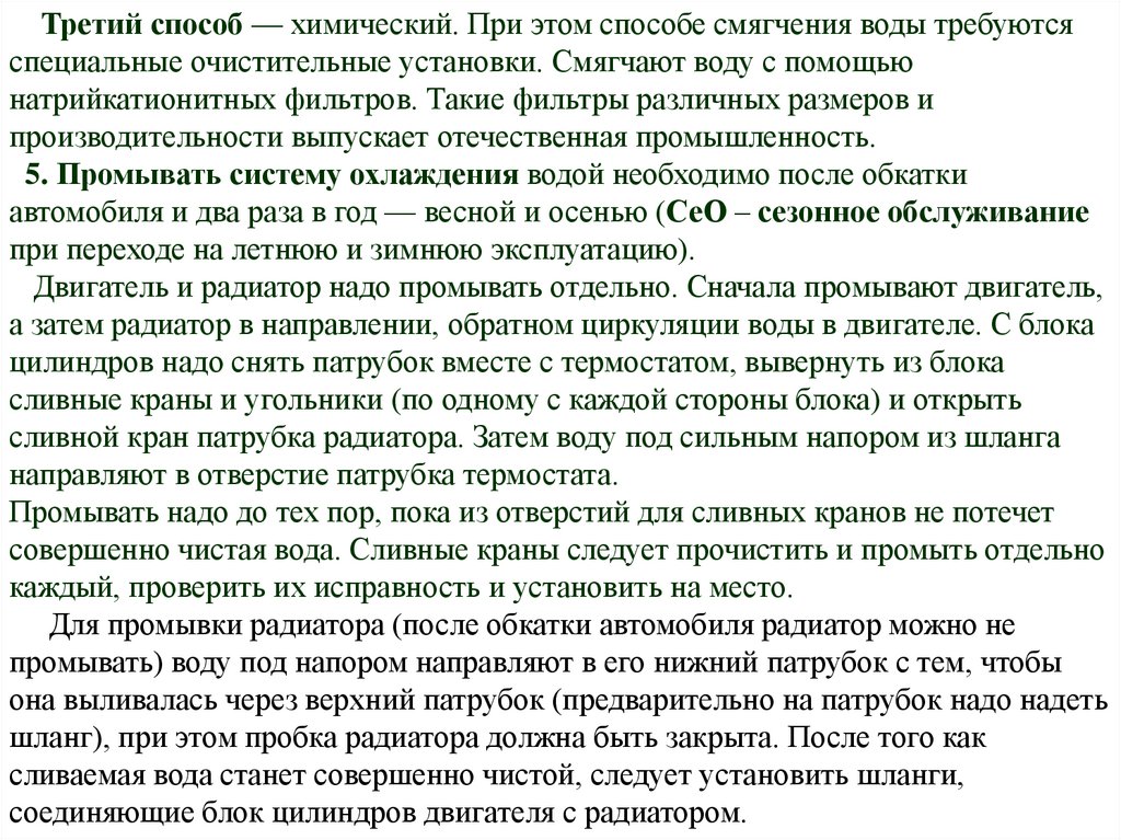 В тех случаях, когда система охлаждения загрязнена, ее надо промывать.