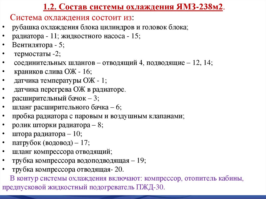 1.2. Состав системы охлаждения ЯМЗ-238м2.Система охлаждения состоит из: