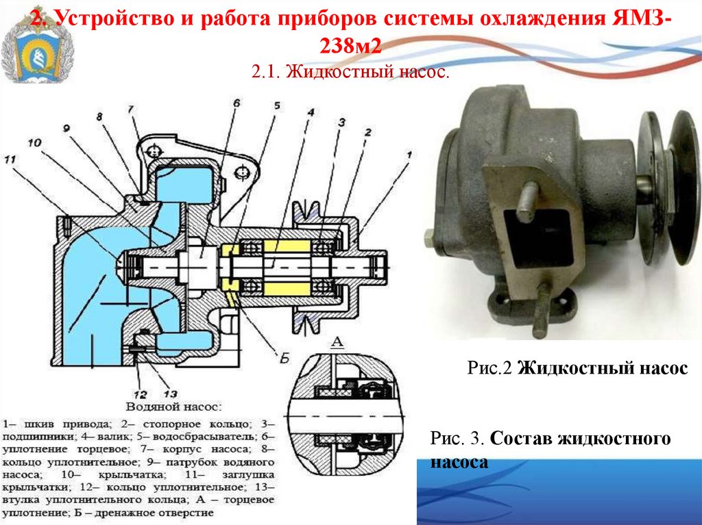 2. Устройство и работа приборов системы охлаждения ЯМЗ238м22.1. Жидкостный насос.