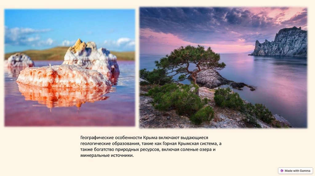 Географические особенности Крыма включают выдающиесягеологические образования, такие как Горная Крымская система, а