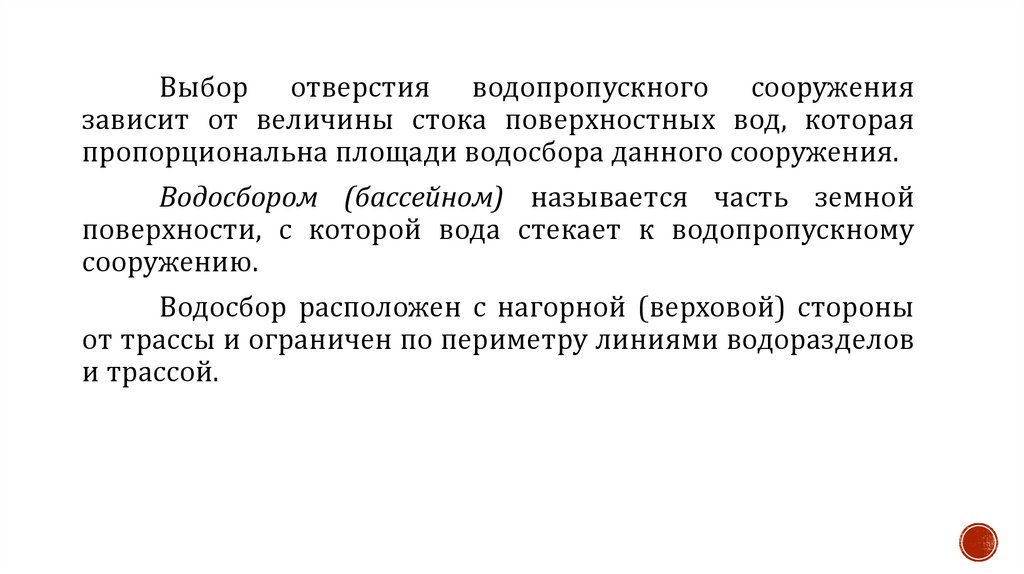 поверхности, с которой вода стекает к водопропускному