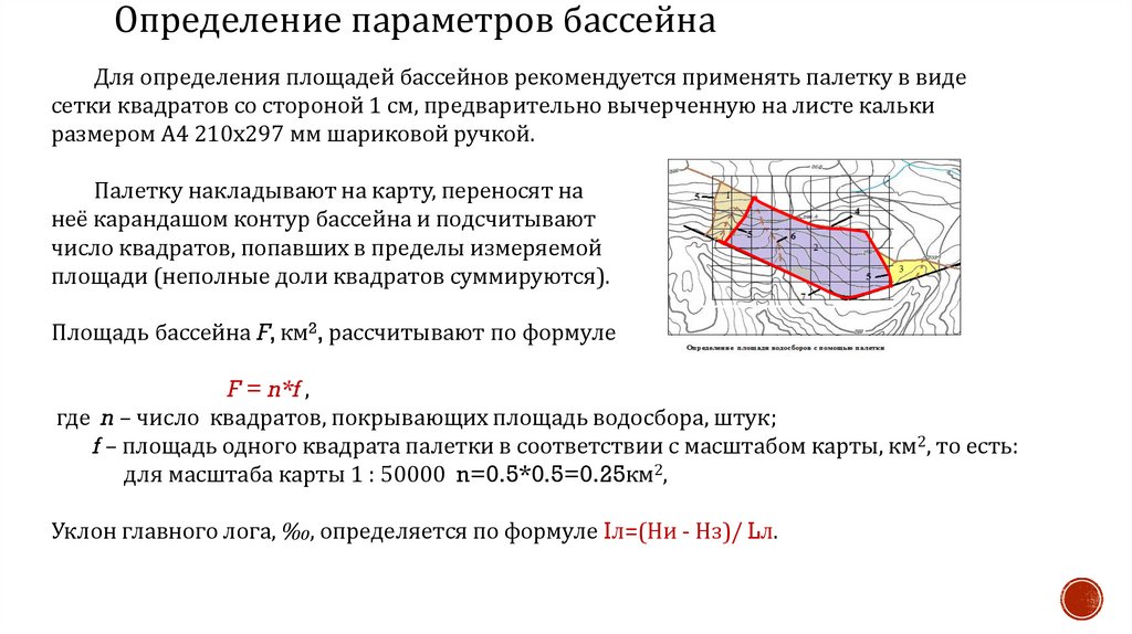 Определение параметров бассейнаДля определения площадей бассейнов рекомендуется применять палетку в виде