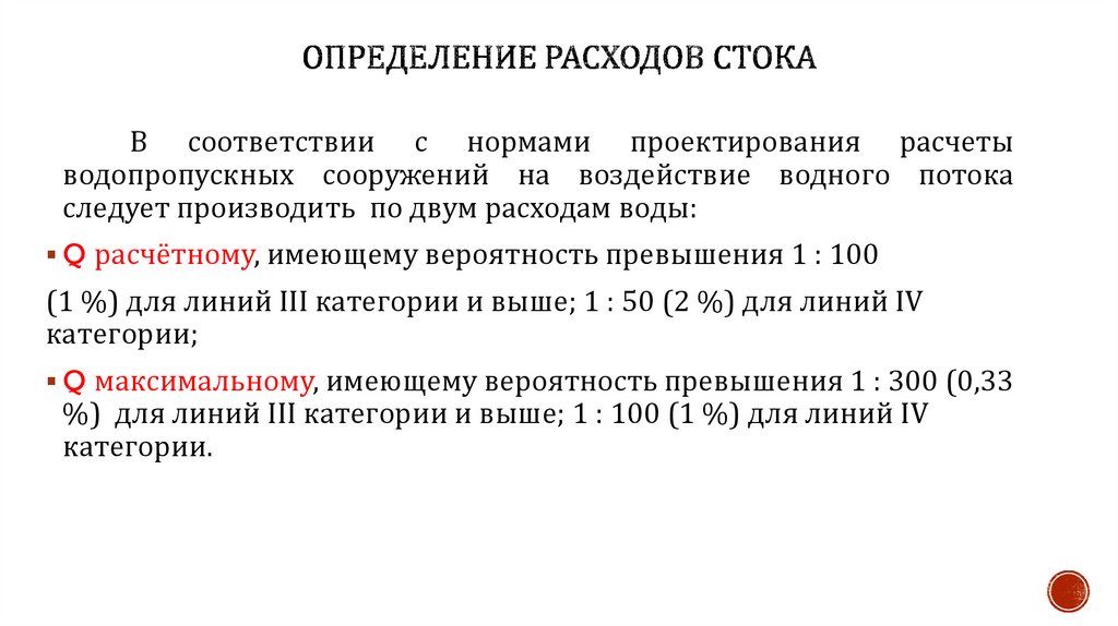 В соответствии с нормами проектирования расчетыводопропускных сооружений на воздействие водного потока