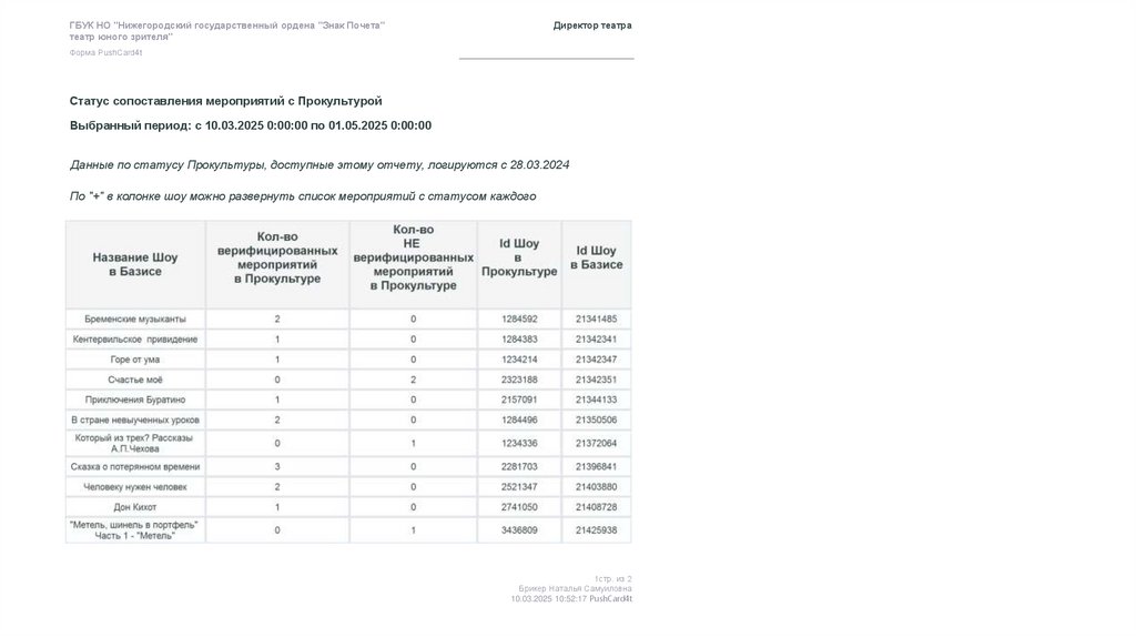 Данные по статусу Прокультуры, доступные этому отчету, логируются с 28.03.2024