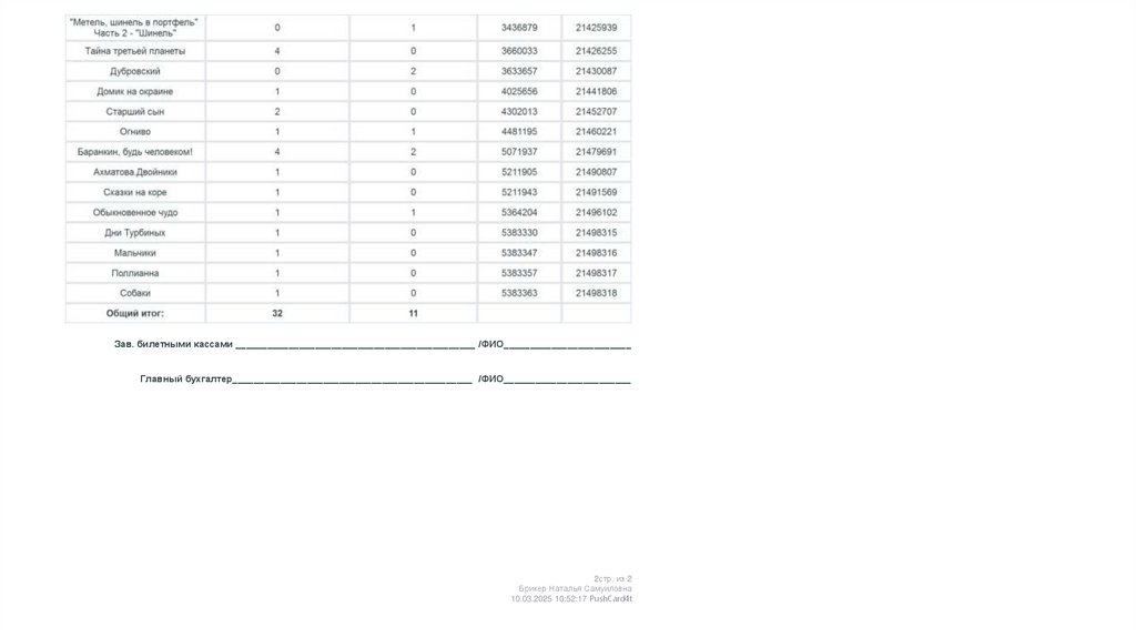 Зав. билетными кассами _____________________________________________ /ФИО________________________Главный бухгалтер_____________________________________________ /ФИО________________________