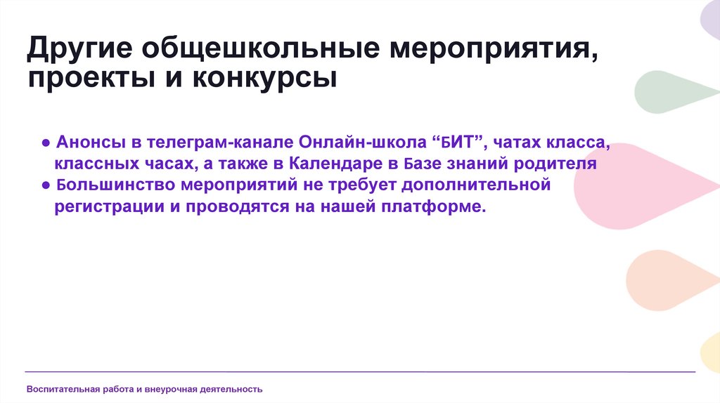 ● Анонсы в телеграм-канале Онлайн-школа “БИТ”, чатах класса,
