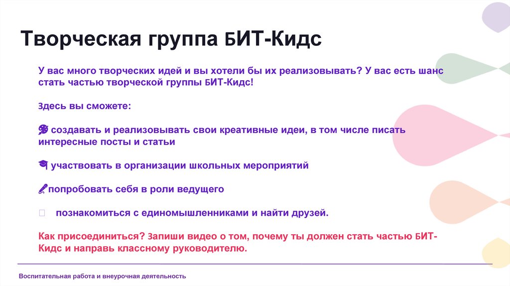 Творческая группа БИТ-КидсУ вас много творческих идей и вы хотели бы их реализовывать? У вас есть шанс