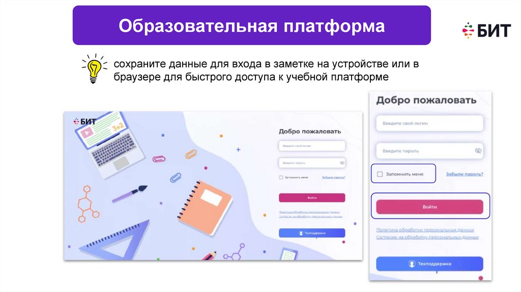 Образовательная платформасохраните данные для входа в заметке на устройстве или в