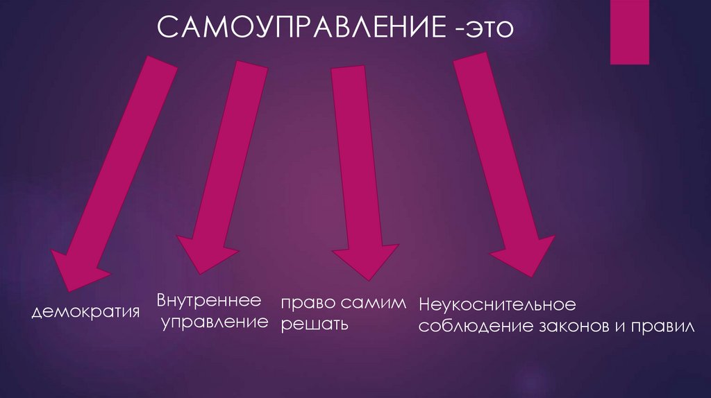 САМОУПРАВЛЕНИЕ -этоВнутреннее право самим Неукоснительное