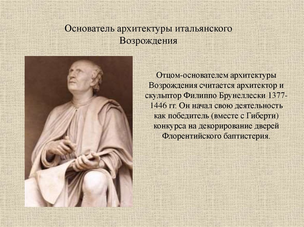 скульптор Филиппо Брунеллески 13771446 гг. Он начал свою деятельность