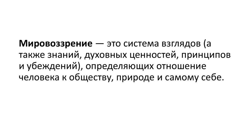 Мировоззрение — это система взглядов (атакже знаний, духовных ценностей, принципов
