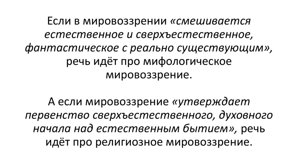 Если в мировоззрении «смешиваетсяестественное и сверхъестественное,
