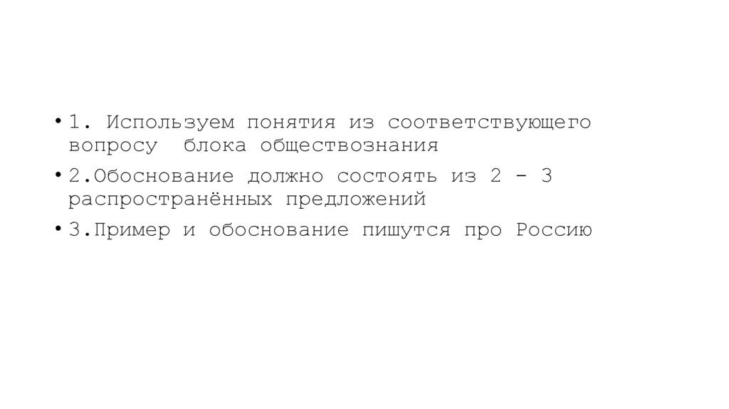 • 1. Используем понятия из соответствующеговопросу блока обществознания