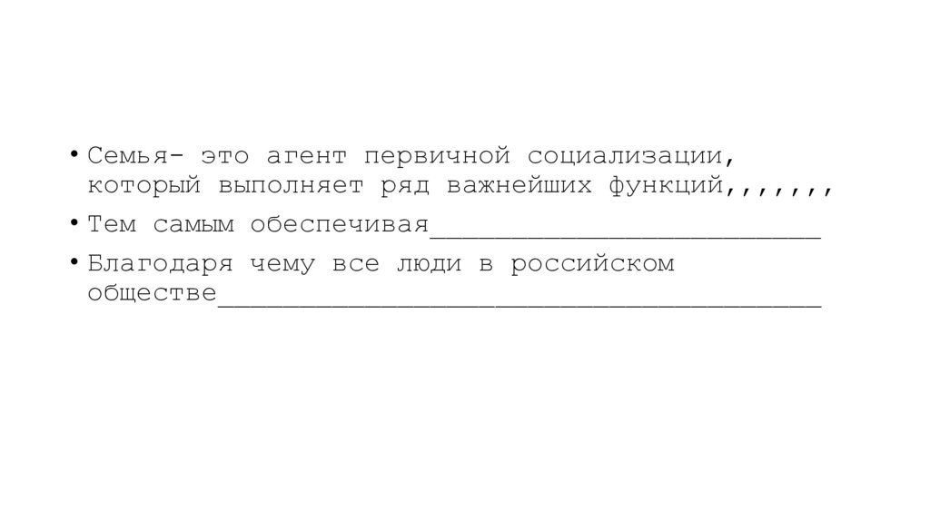 • Семья- это агент первичной социализации,который выполняет ряд важнейших функций,,,,,,,