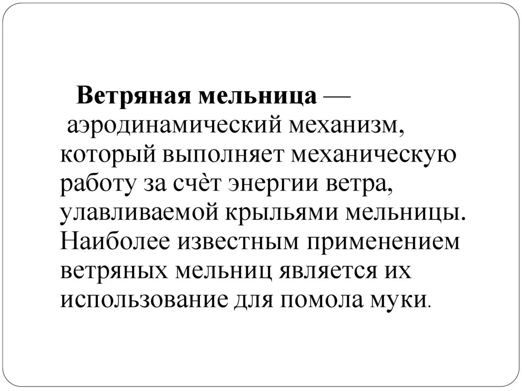 Ветряная мельница —аэродинамический механизм,