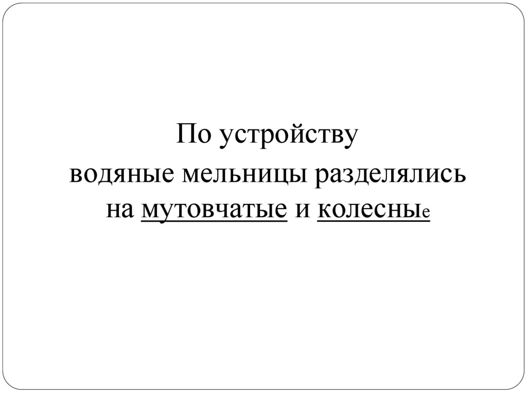 По устройствуводяные мельницы разделялись