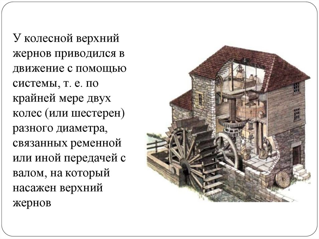 У колесной верхнийжернов приводился в