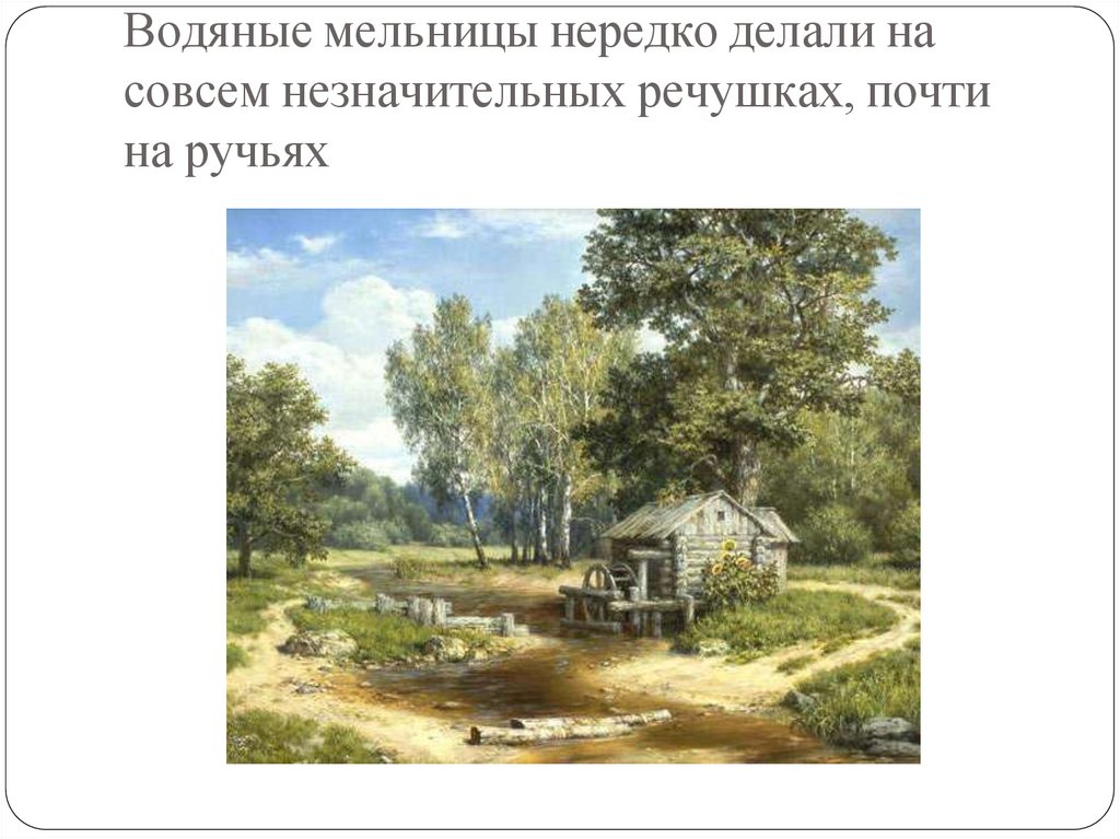 Водяные мельницы нередко делали насовсем незначительных речушках, почти