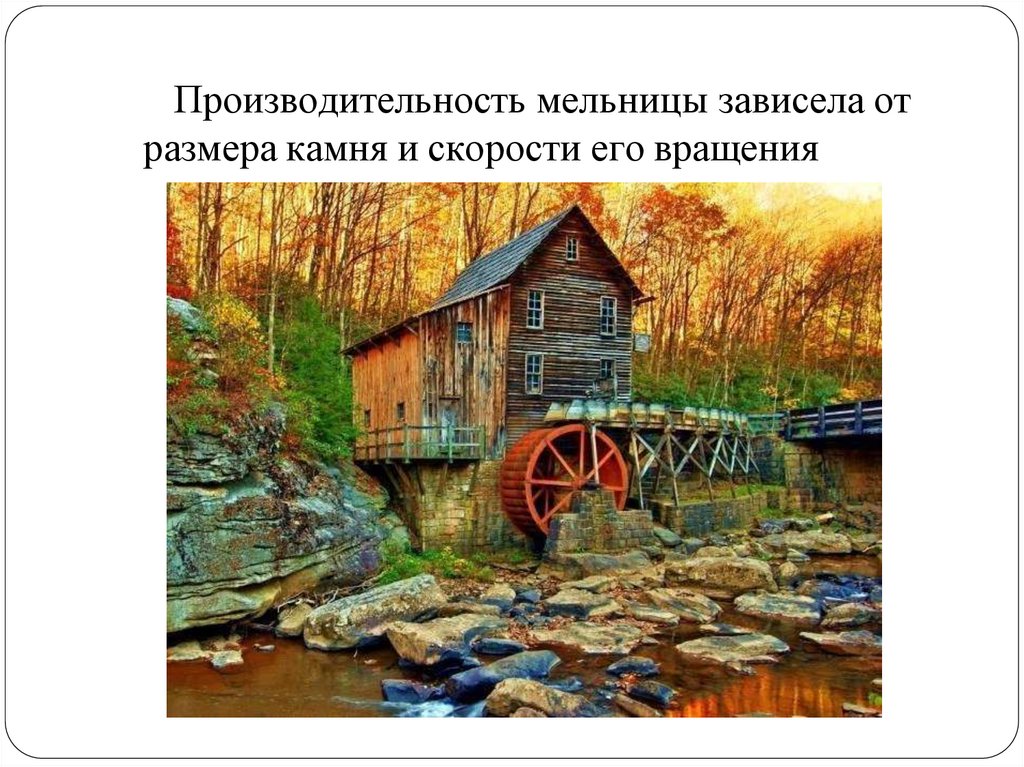 Производительность мельницы зависела отразмера камня и скорости его вращения