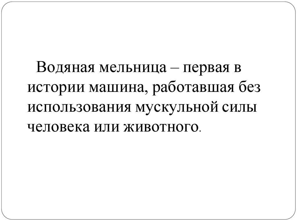 Водяная мельница – первая вистории машина, работавшая без