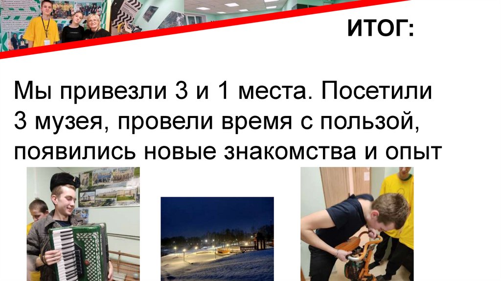 ИТОГ:Мы привезли 3 и 1 места. Посетили