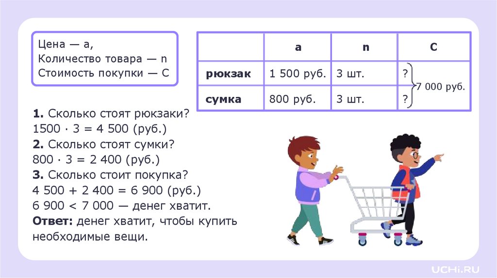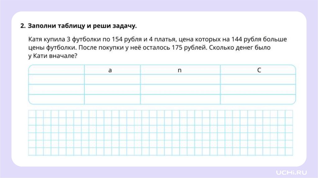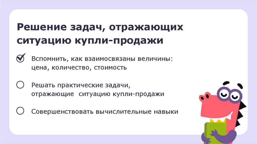 Решение задач, отражающих ситуацию купли - продажи (4 класс)