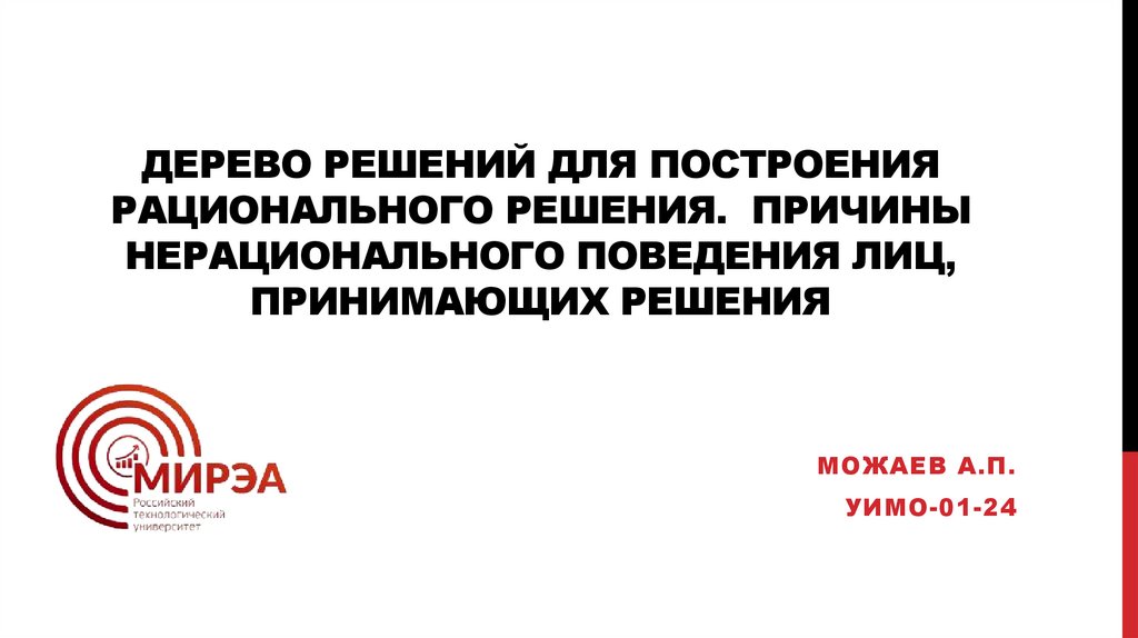 Дерево решений для построения рационального решения. Причины нерационального поведения лиц, принимающих решения