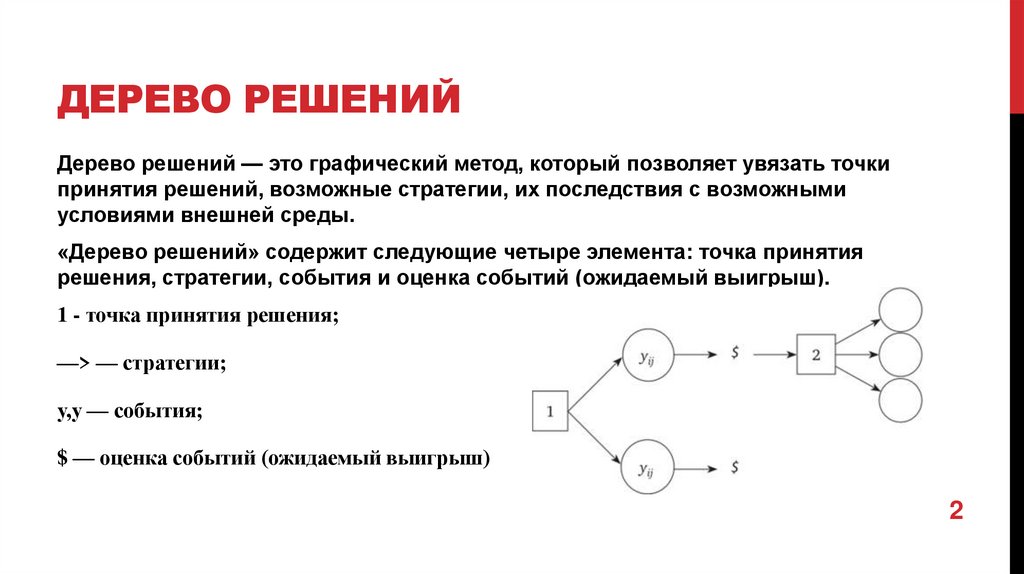 ДЕРЕВО РЕШЕНИЙДерево решений — это графический метод, который позволяет увязать точки