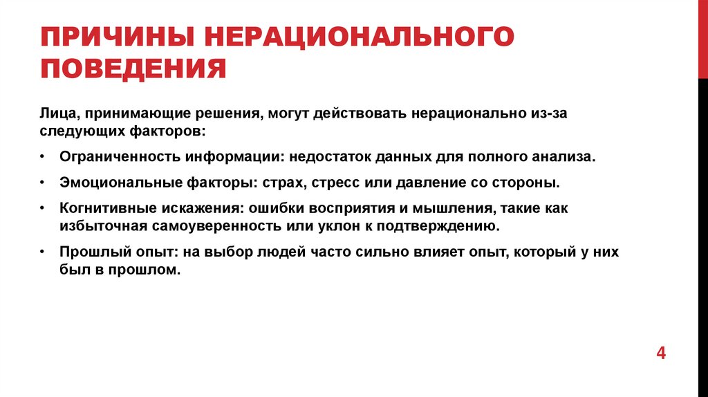 ПРИЧИНЫ НЕРАЦИОНАЛЬНОГОПОВЕДЕНИЯ