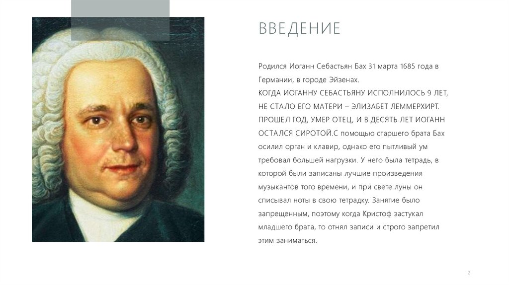 ВВЕ ДЕНИЕРодился Иоганн Себастьян Бах 31 марта 1685 года в