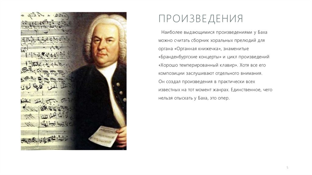 ПРОИЗВЕ ДЕНИЯНаиболее выдающимися произведениями у Баха