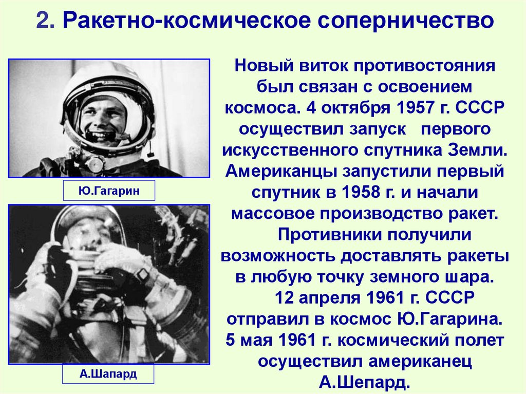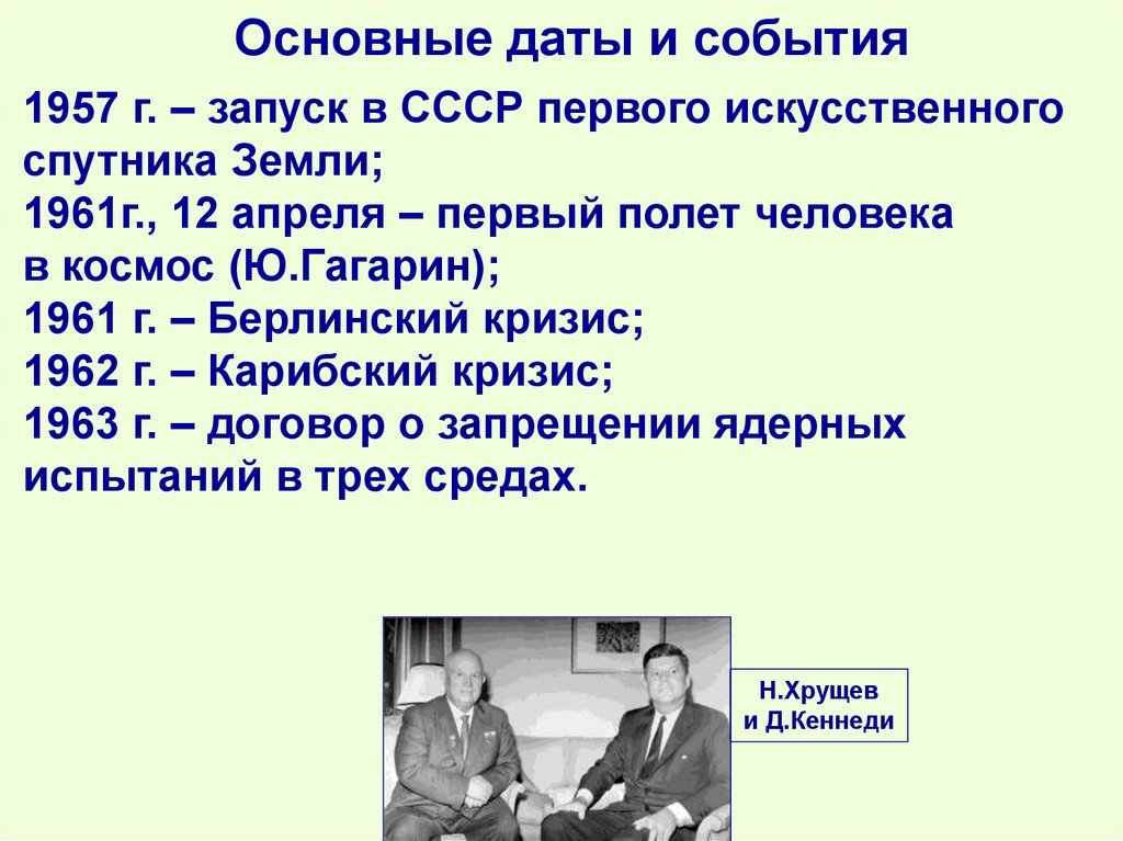 1957 г. – запуск в СССР первого искусственногоспутника Земли;