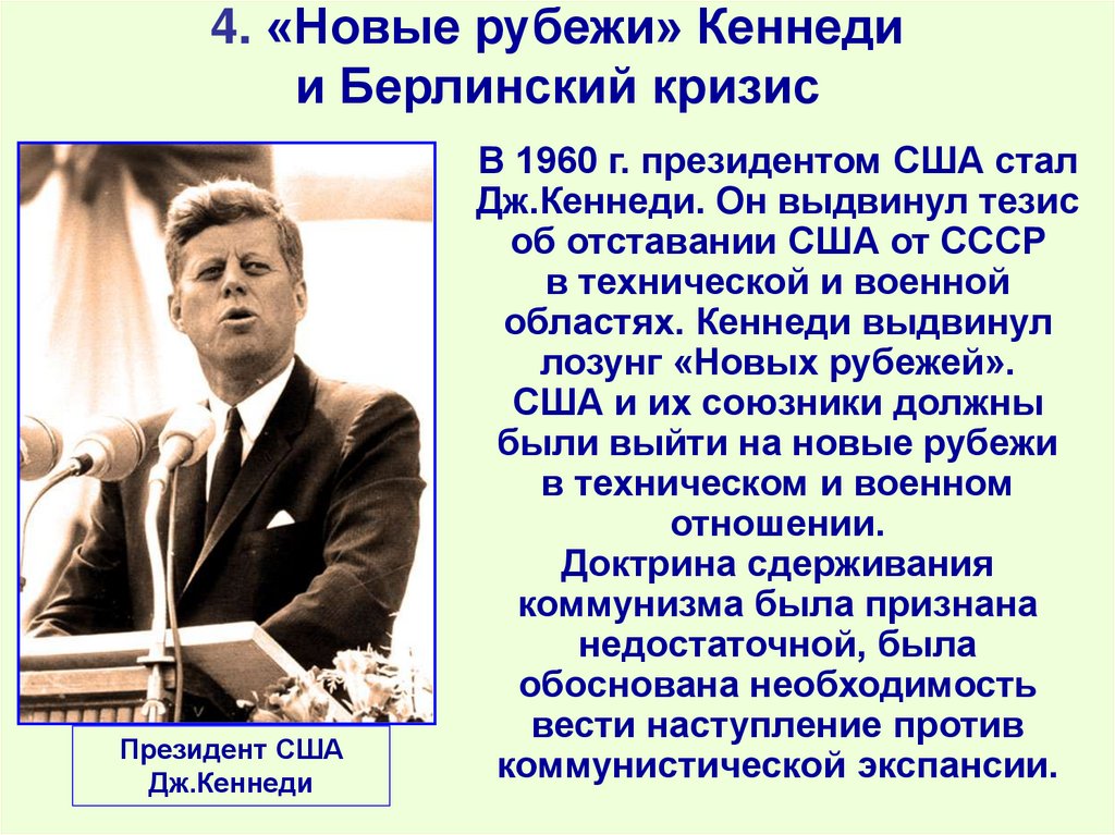 18. 4. «Новые рубежи» Кеннеди и Берлинский кризис