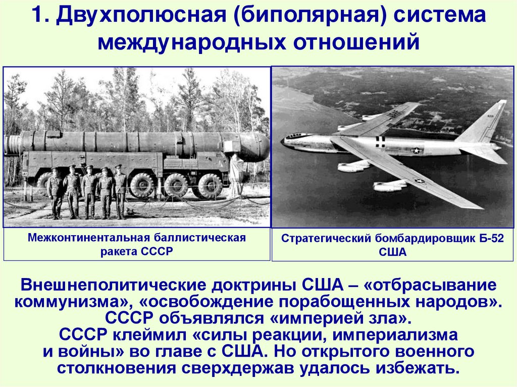 1. Двухполюсная (биполярная) системамеждународных отношений