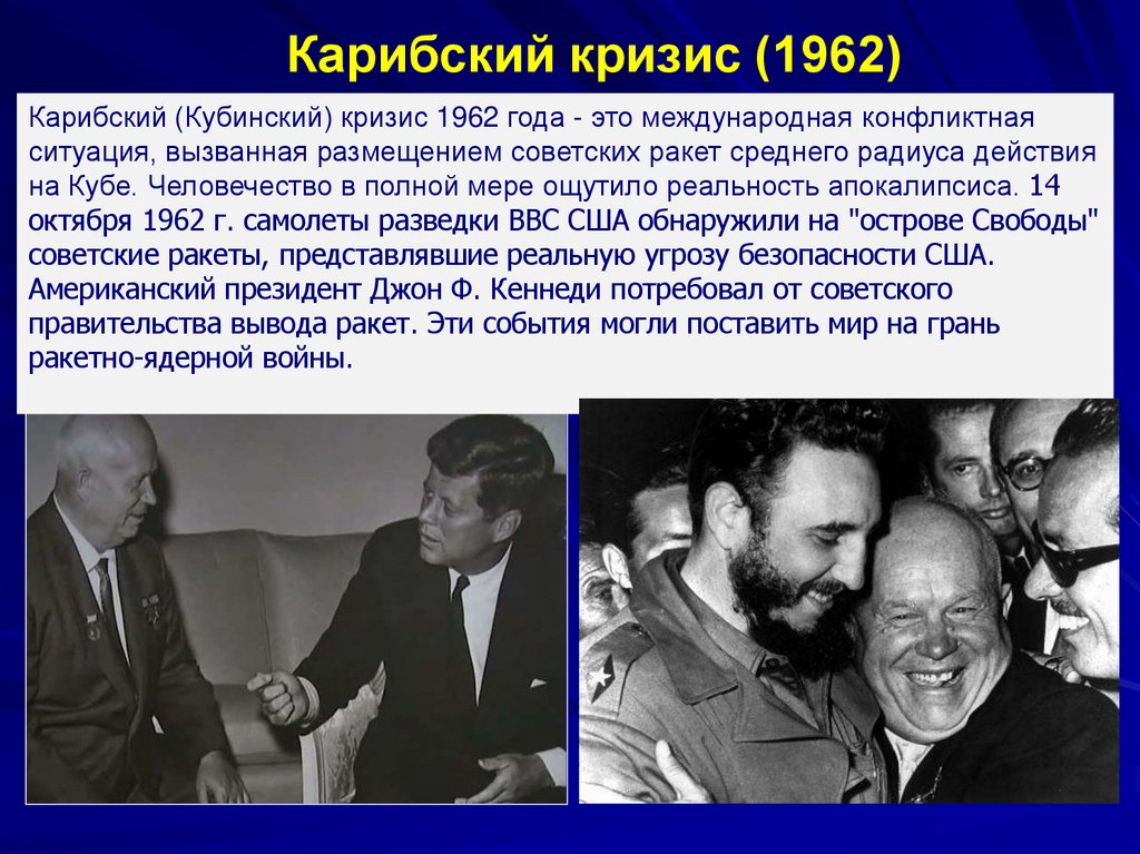 Карибский кризис (1962)Карибский (Кубинский) кризис 1962 года - это международная конфликтная