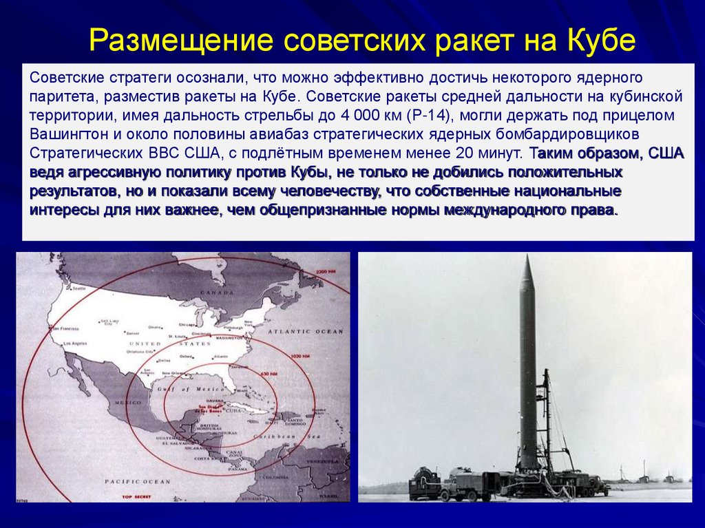 Размещение советских ракет на КубеСоветские стратеги осознали, что можно эффективно достичь некоторого ядерного