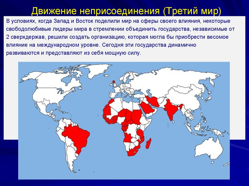 В условиях, когда Запад и Восток поделили мир на сферы своего влияния, некоторыесвободолюбивые лидеры мира в стремлении объединить государства, независимые от