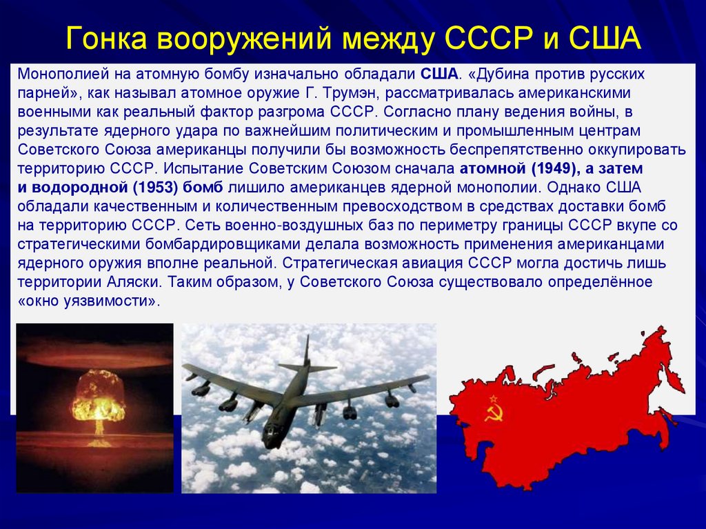 территорию СССР. Испытание Советским Союзом сначала атомной (1949), а затем