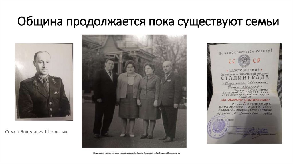 Община продолжается пока существуют семьиСемен Янкеливич Школьник
