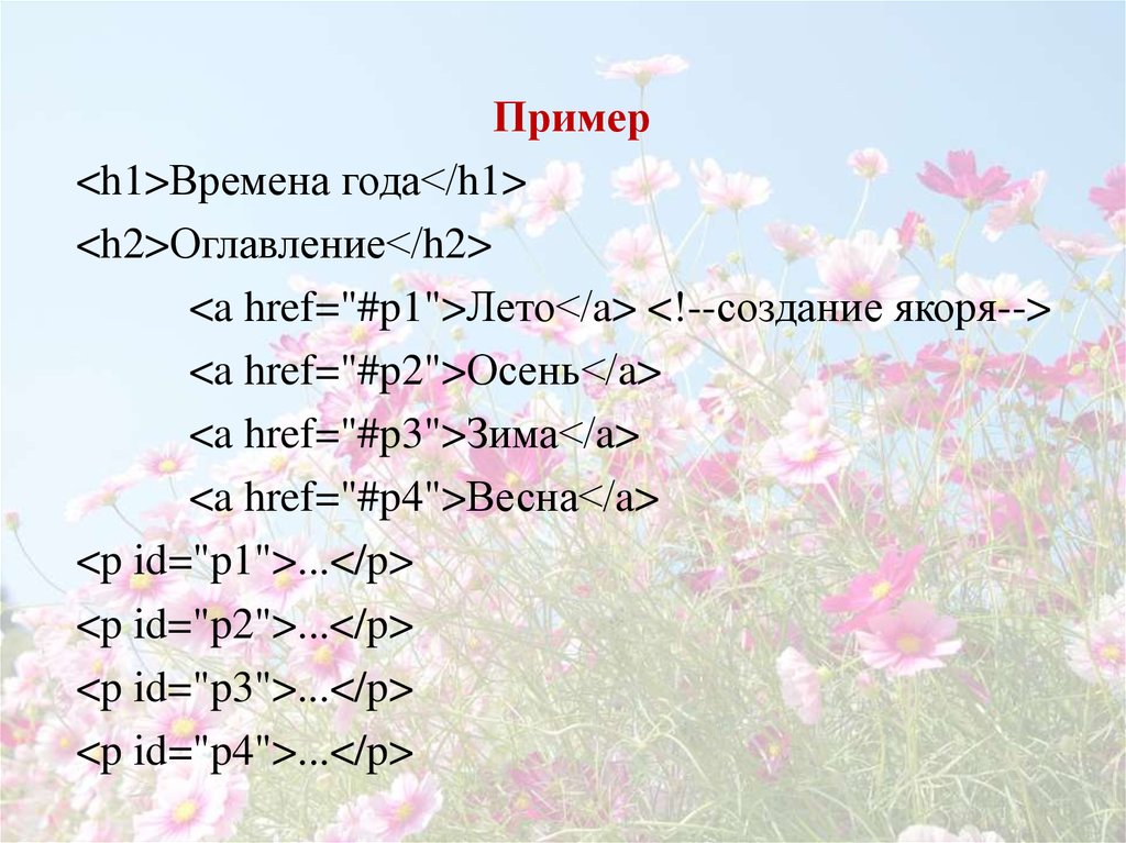 <a href="#p1">Лето</a> <!--создание якоря-->