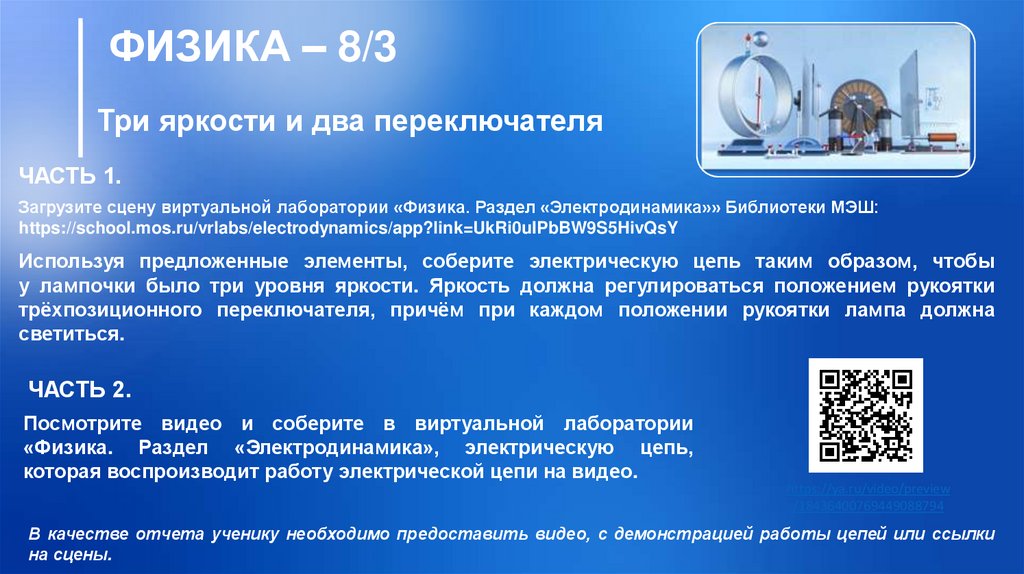 В качестве отчета ученику необходимо предоставить видео, с демонстрацией работы цепей или ссылки