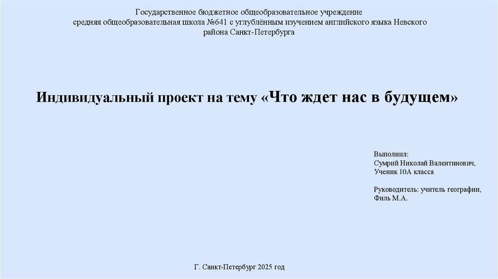Индивидуальный проект на тему «Что ждет нас в будущем»