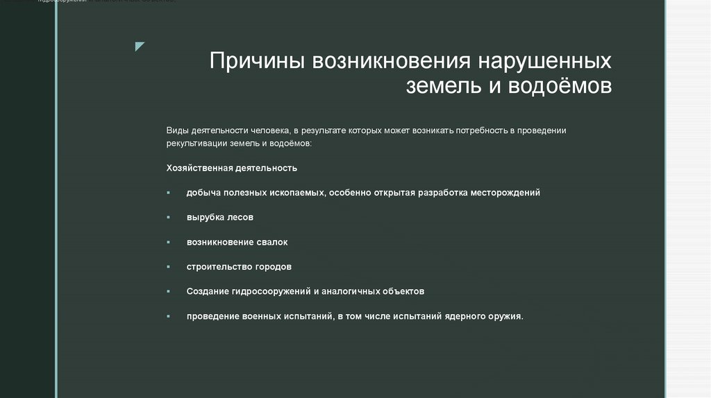 Виды деятельности человека, в результате которых может возникать потребность в проведении