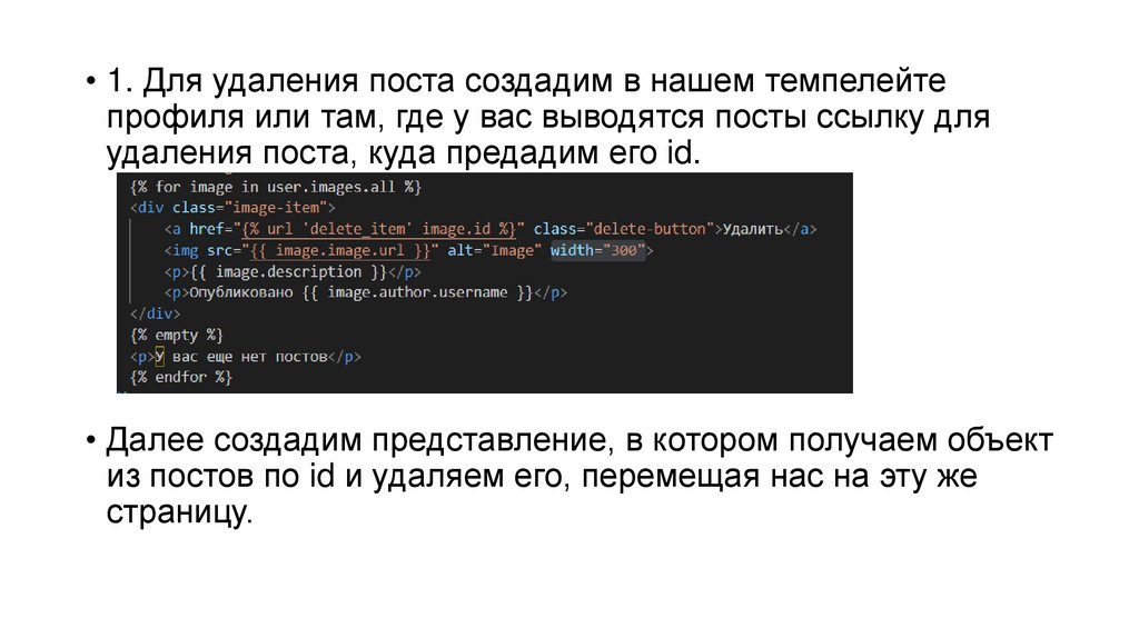 • 1. Для удаления поста создадим в нашем темпелейтепрофиля или там, где у вас выводятся посты ссылку для